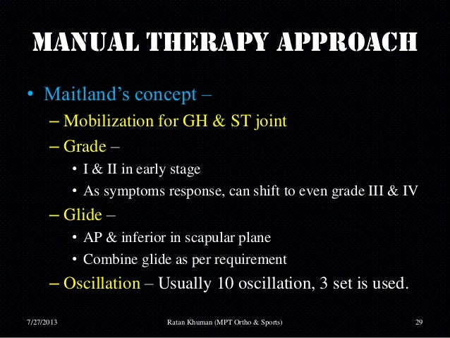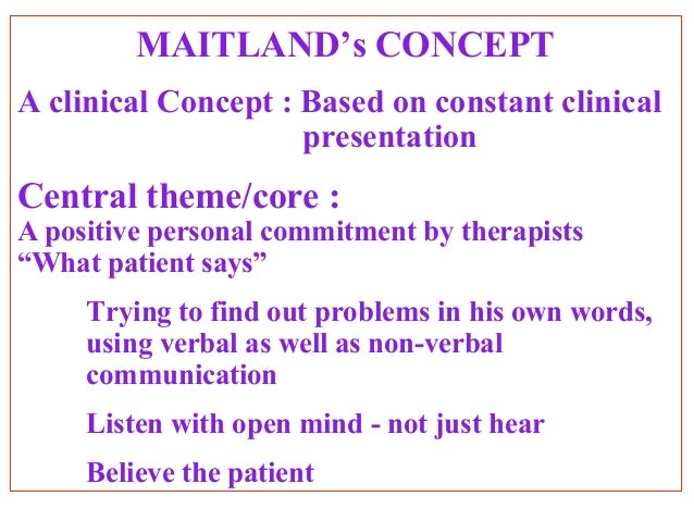 Maitland's publishing and lectures addressed the importance of the subjective examination and specific passive movements that, at the maitland. • grade i small amplitude, short of despite which grade of mobilization is utilized in the treatment, the maitland method emphasizes.